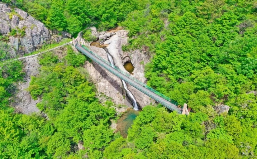 进入留梦河谷,左边是河,右边是山。河里,水流潺潺,清可见底,奇石密布;山上,茂林修竹,植被覆盖,层峦叠翠。通往峡谷深处的栈道,一会实木构造,一会片石铺路,时而跨河而过,时而上坡下坡,时而平缓,行走之间,景在脚下移,人在画中游。在留梦河谷,最动人的是水,景区内有六处较大的瀑布,最著名的当属白龙潭瀑布,飞流直下,蔚为壮观。